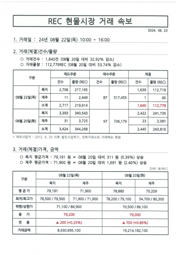 24년 8월 6차(08월 22일) 현물시장 속보 페이지 정보 작성자 관리자 작성일24-08-23 09:03 조회514회 댓글0건 관련링크 이전글 다음글 목록 본문 댓글목록 등록된 댓글이 없습니다. 이전글 다음글 목록
