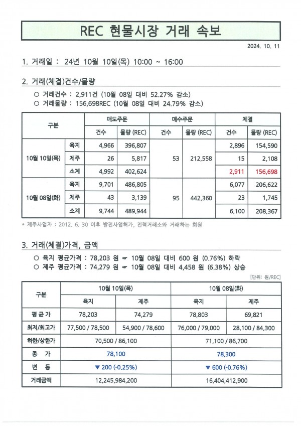 24년 10월 2차(10월 10일) 현물시장 속보 페이지 정보 작성자 관리자 작성일24-10-11 09:11 조회469회 댓글0건 관련링크 이전글 다음글 목록 본문 댓글목록 등록된 댓글이 없습니다. 이전글 다음글 목록
