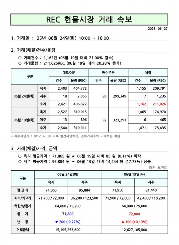 25년 06월 6차(6월 24일) 현물시장 속보 페이지 정보 작성자 관리자 작성일25-06-27 08:29 조회359회 댓글0건 관련링크 이전글 다음글 목록 본문 댓글목록 등록된 댓글이 없습니다. 이전글 다음글 목록