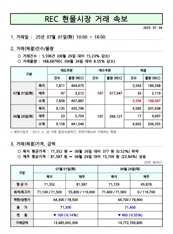 25년 07월 1차(7월 1일) 현물시장 속보 페이지 정보 작성자 관리자 작성일25-07-04 09:23 조회357회 댓글0건 관련링크 이전글 다음글 목록 본문 댓글목록 등록된 댓글이 없습니다. 이전글 다음글 목록