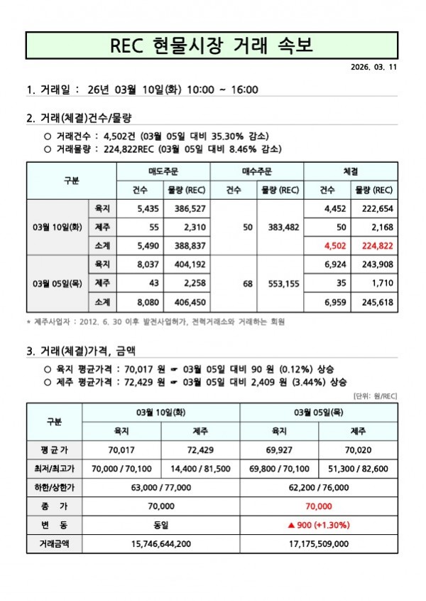 26년 03월 3차(03월 10일) 현물시장 속보 페이지 정보 작성자 관리자 작성일26-03-11 08:59 조회106회 댓글0건 관련링크 이전글 다음글 목록 본문 댓글목록 등록된 댓글이 없습니다. 이전글 다음글 목록