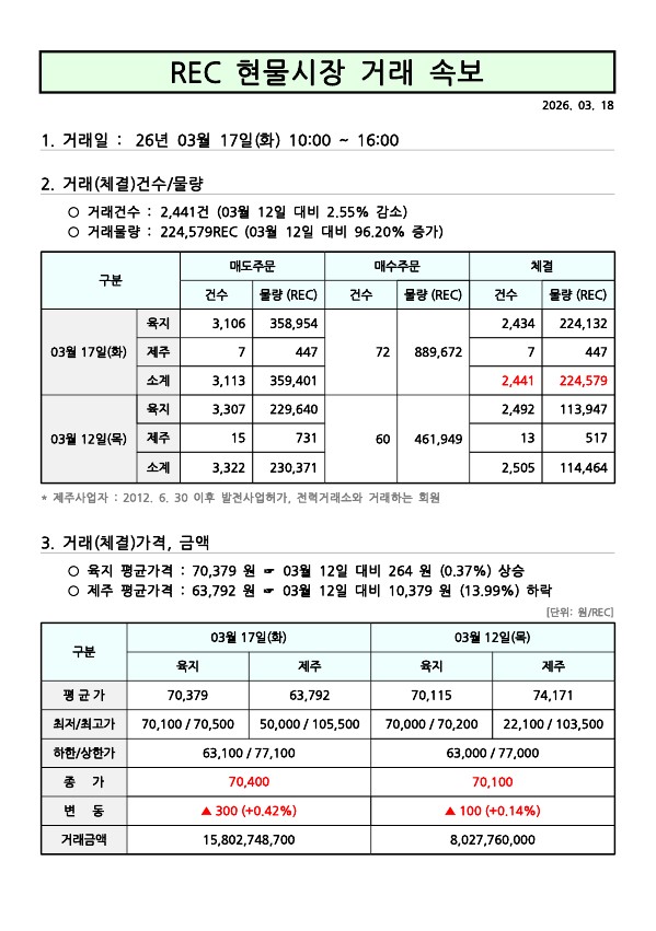 26년 03월 5차(03월 17일) 현물시장 속보 페이지 정보 작성자 관리자 작성일26-03-18 10:23 조회149회 댓글0건 관련링크 이전글 다음글 목록 본문 댓글목록 등록된 댓글이 없습니다. 이전글 다음글 목록