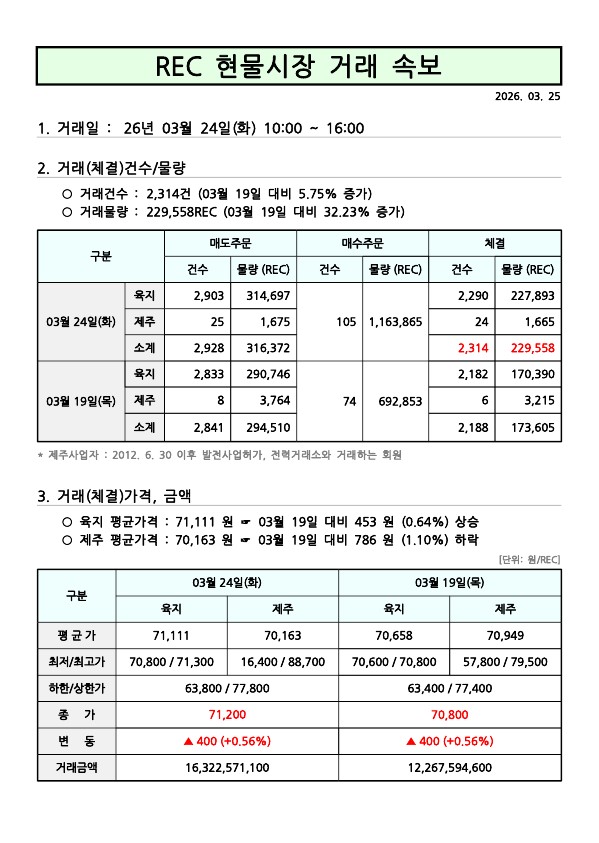 26년 03월 7차(03월 24일) 현물시장 속보 페이지 정보 작성자 관리자 작성일26-03-25 10:31 조회57회 댓글0건 관련링크 이전글 다음글 목록 본문 댓글목록 등록된 댓글이 없습니다. 이전글 다음글 목록