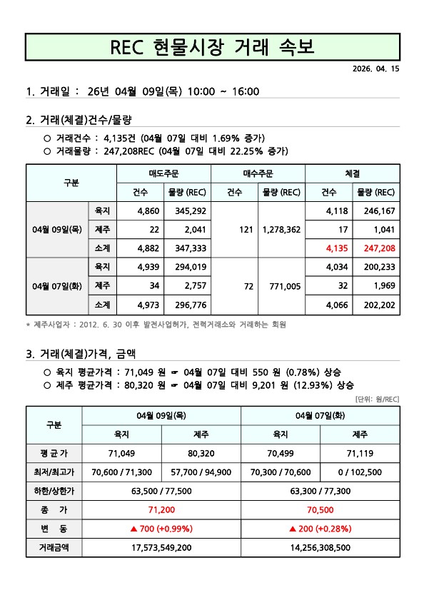 26년 04월 3차(04월 09일) 현물시장 속보 페이지 정보 작성자 관리자 작성일26-04-15 16:54 조회7회 댓글0건 관련링크 이전글 다음글 목록 본문 댓글목록 등록된 댓글이 없습니다. 이전글 다음글 목록