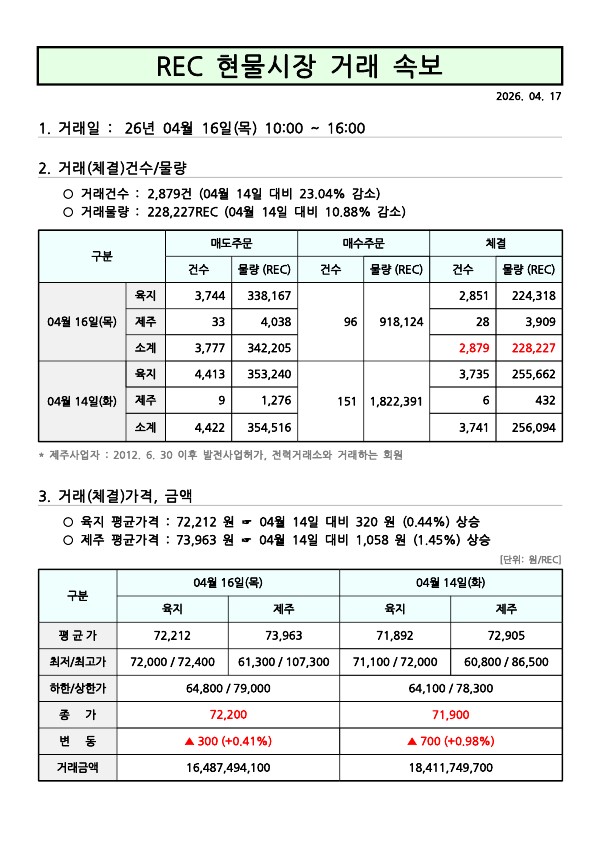 26년 04월 5차(04월 16일) 현물시장 속보 페이지 정보 작성자 관리자 작성일26-04-17 09:56 조회5회 댓글0건 관련링크 다음글 목록 본문 댓글목록 등록된 댓글이 없습니다. 다음글 목록